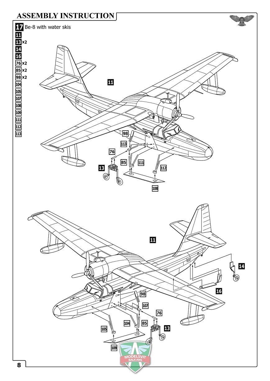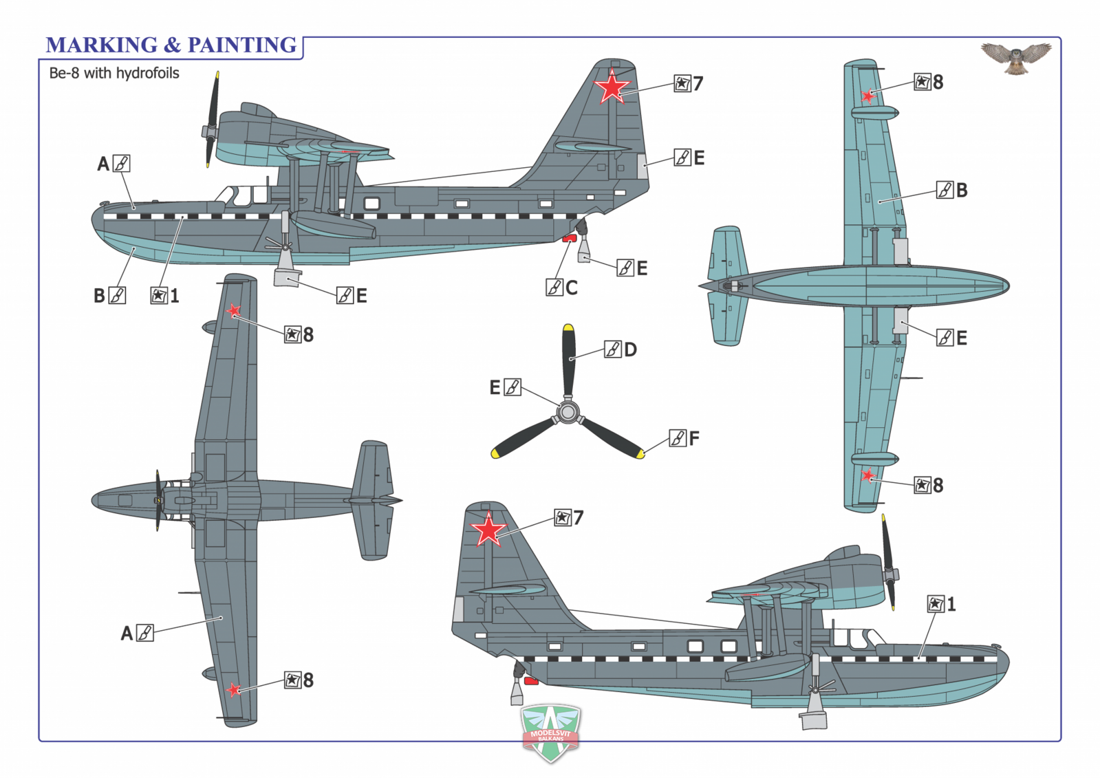 Sova-M 72025 1/72 Be-8 amphibian aircraft (with water skis & hydrofoils) Plastic Model Kit