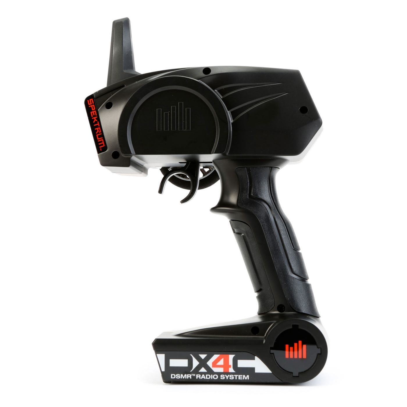 Designed to work with AVC-enabled RC vehicles, the Spektrum DX4C is a practical and reliable transmitter for any car, buggy, truck or boat. Features DSMR technology makes the radio frequency-agile Comes with waterproof SRS4210 AVC receiver Able to adjust AVC steering and throttle assistance Extra channels for other functions Pre-set mixes available Antenna is integrated into the transmitter 20-model memory with ModelMatch technology LCD screen Comfortable transmitter grip An Excellent Radio for RC Cars, the new Spektrum DX4C surface radio is a great choice for Active Vehicle Control (AVC)-equipped RC vehicles. This programmable 2.4GHz radio comes with a Spektrum SRS4210 AVC receiver and is a great step-up from the Spektrum DX2L or DX3C radio. The included receiver offers the range and signal security of a 4-channel DSMR receiver with AVC Technology, in a single, compact, waterproof unit. As you drive, AVC can calcuate your vehicle's attitude multiple times per second and make instantaneous corrections to the steering and throttle. This allows you to stay precisely on the trajectory you require. You can adjust the steering and throttle stability with the transmitter to suit your skill level and driving skill. You will find that AVC feels completely natural, with no lag in response or limits on your control. Complete with an affordable price, the Spektrum DX4C is an excellent package for drivers.