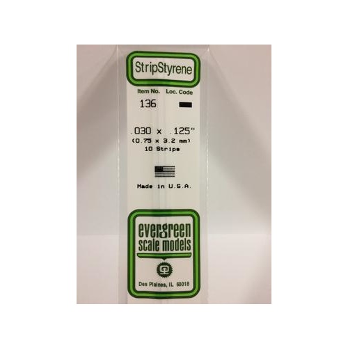 Evergreen - Styrene Strip White .020 X .060 X 14 - #123