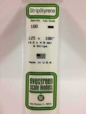 Evergreen - Styrene Strip White .125 X .188 X 14 - #188