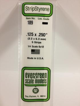 Evergreen - Styrene Strip White .125 X .250 X 14 - #189