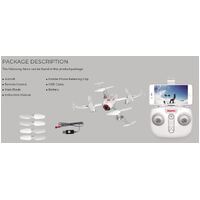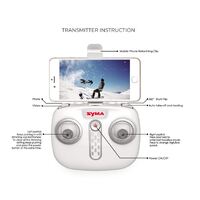 With the unique Syma app control function, you can experience drone flight without the worry of crashing. The auto hover and headless flight mode function ensures you can fly confidently. Using the Syma APP, you can enter a flight plan for the drone to follow. Just use your finger tip to map a course for the drone to follow. The 'Flip' function on the remote enables stunts left and right for aerobatics. The 480p camera gives great pictures and video footage direct back to your phone via the app. Battery: 3.7V 400mAh Li-poly(included) Transmitter Battery: 4"AA" batteries (not included) Charging time: About 90 minutes Flying time: About 6 minutes and a half Controlling distance: About 25 meters Box Size: 35 X 6.5X20.5cm Product Size: 16.6 X 17.6 X 3.7 cm Frequency: 2.4G