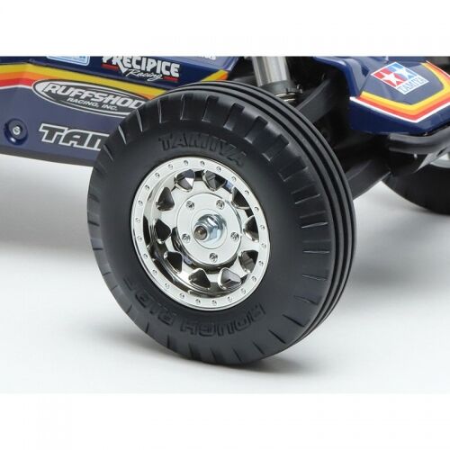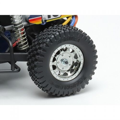 Tamiyas designers have taken inspiration from its back catalog of iconic 2WD off-road buggies to bring fans of radio control the ALL-NEW BBX! This 1/10 R/C 2WD off-road buggy model features a combination of classic design and modern performance. Its brand-new chassis, reminiscent of 1980s sand rail dune buggies, is a hybrid monocoque-roll cage and employs rear trailing arm suspension inspired by full-size UTVs. The new body is designed by famed Japanese artist Atsushi Arino and utilizes a classic 1980s inspired livery with retro wheels and tires to match!