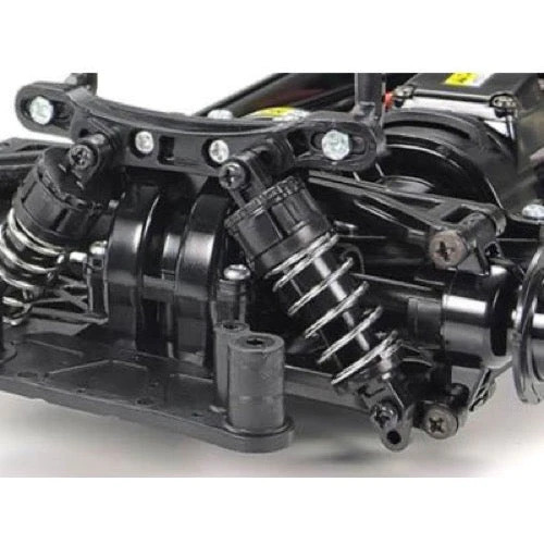 Tamiya Toyota Celica GT-Four ST165 4WD TT-02 RC Kit Meet the Champ Rallying fans across the world enjoyed the exploits of the Celica GT-Four in 1990, as it won five times in global rally races on the way to a first Drivers' title for a Japanese car. This R/C model assembly kit recreates that car in 1/10 scale, with a polycarbonate body capturing the streamlined form, and stickers included to capture not just various sponsor logos but even the red sections of the eye-catching livery. TT-02: Adaptable, balanced shaft driven 4WD The shaft-driven 4WD TT-02 chassis employs a longitudinal layout with the battery on the left and the motor on the right, to give excellent stability. In addition, it features identical left and right suspension arms and uprights for ease of assembly, plus easy-to-maintain gearboxes. It is a highly adaptable chassis, as it offers 2 different wheelbases, 2 ground clearance settings and 2 tread set-ups in addition to a range of 10 possible gear ratios. It is not short on looks either, with brake disc-shaped wheel hubs and stylish front bumper supports. White dish wheels use racing radial tires. Features: The streamlined silhouette of the car won great acclaim and is realistically captured by the model. There is plenty to admire at the front, with flat depictions of the headlights and grille. At the rear the eye is drawn to the prominent spoiler. Stickers recreate taillights and license plate. White dish wheels are paired with treaded semi-pneumatic racing radial tires for great grip. Resin ball links in the steering linkage joints make for smooth, comfortable motion. Wheel hubs are shaped to look like brake discs. Motor cover includes removable cooling duct (not attached in image). This image gives a closer look at the rear double-wishbone suspension with friction dampers. Requires: 2-channel R/C system w/ESC R6/AA/UM3 batteries for transmitter Battery pack & charger