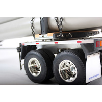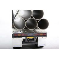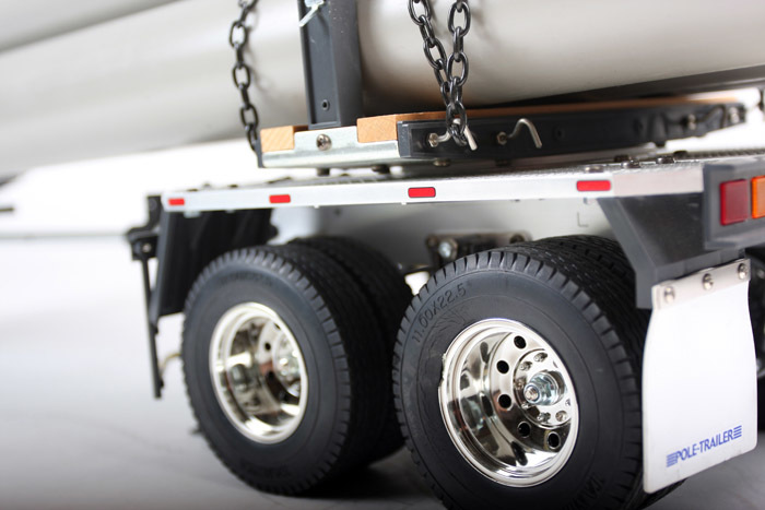 The Pole-Trailer is able to carry pipes of various lenghts due to its collapsible pole. The trailer also features an aluminum chassis and 4 highly detailed wheels. 5 plastic pipes of 55mm in diameter and 75cm in length are included. Specification Description: - The Pole-Trailer is able to carry pipes of various lenghts due to its collapsible pole. - The trailer also features an aluminum chassis and 4 highly detailed wheels. - 5 plastic pipes of 55mm in diameter and 75cm in length are included. Features: - Metal and Plastic Parts Poles included - Manual Retract legs - Rubber Tires - Hop-up Parts Available Specifications: - Scale: 1/14 - Length: 27.91 inches (709mm) - Width: 7.32 inches (186mm) - Rear Tread: 5.43 inches (138mm) - Weight: 5.62lbs. (2550g) - Chassis: Aluminum ladder - Suspension: Solid Axle - Damper Type: Metal friction - Wheels & Tires: Chrome/Radial - 5 plastic pipes of 55mm in diameter and 75cm in length are included