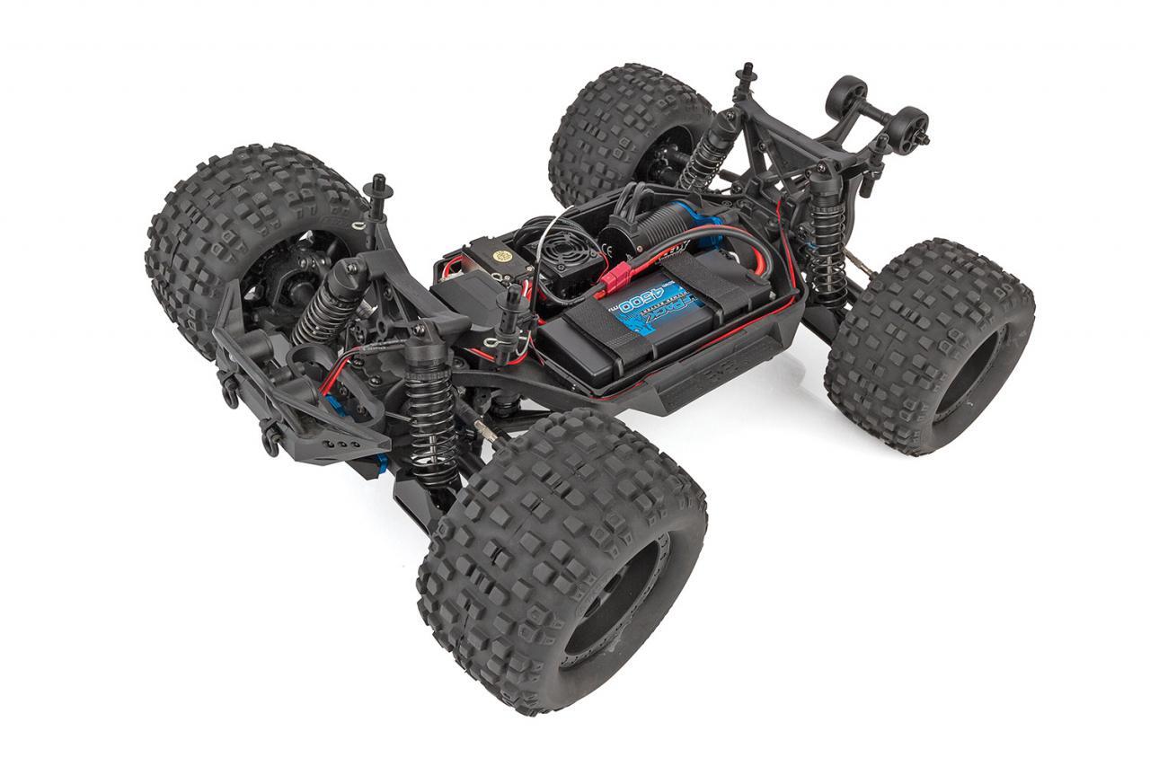 Team Associated Rival MT10 4WD Monster Truck The RIVAL MT10 is a powerful, purposeful, and built-to-last 1:10 scale monster truck capable of running on 3s LiPo battery. Its strength lies at the very core of this beast with its high-performance 3300kv Reedy brushless motor, fully sealed transmission, robust shaft drive, and center differential. The RIVAL MT10 features long-travel independent suspension that is managed by four fluid-filled, adjustable coil-over shocks, giving the RIVAL MT10 the ability to roll over just about anything in its path. Giant aggressive monster truck tires provide maximum traction, letting the RIVAL MT10 claw through the toughest terrain with ease. The 4WD drivetrain includes three sealed gear differentials that transfer the power through durable, slider-type drive shafts to both ends of the truck. Whether you're smokin' tires on the asphalt, rippin' through the lawn, or tearin' up a dirt field, Team Associated has you covered with the all-new RIVAL MT10! Requires: 7.4v or 11.1v LiPo Battery Charger AA's for transmitter