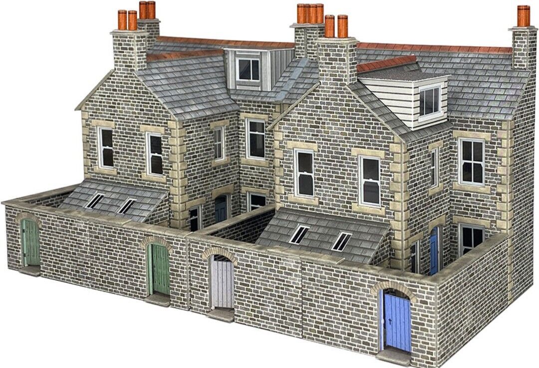 The newly designed low relief terraced house backs are easy to build and a sturdy construction. Also available in brick (PO304)