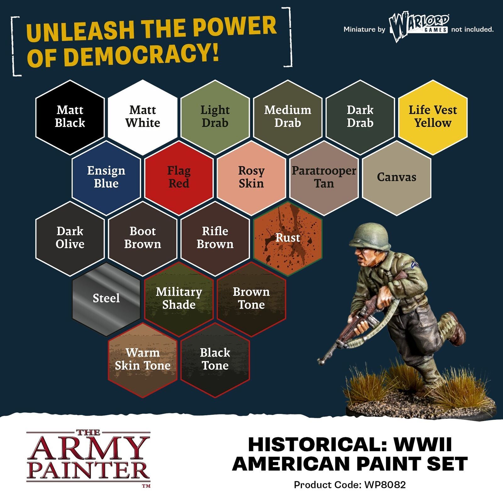 Bring the bold colours of the Greatest Generation to your tabletop. From the iconic olive drab of M1 Garands to the dusty khakis of the airborne, this set has been curated for those who want to recreate the uniforms, gear, and vehicles of American forces with unmatched historical accuracy.