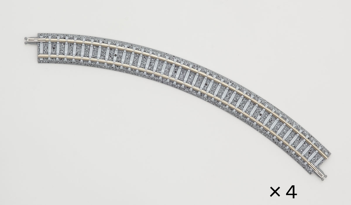 A curved rail with a radius of 243mm, an angle of 45°, and a width of 18.5mm that reproduces PC sleepers.