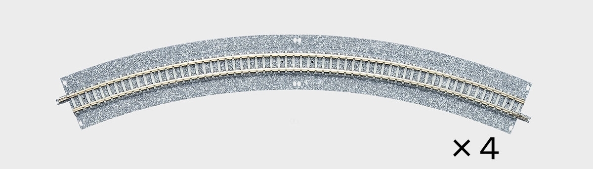A wide curved cant rail with a radius of 391mm, a curve angle of 45°, and a width of 37mm. It has a cant where the rail on the outside of the curve is higher than the inside, so you can enjoy the train leaning inward just like the real thing.