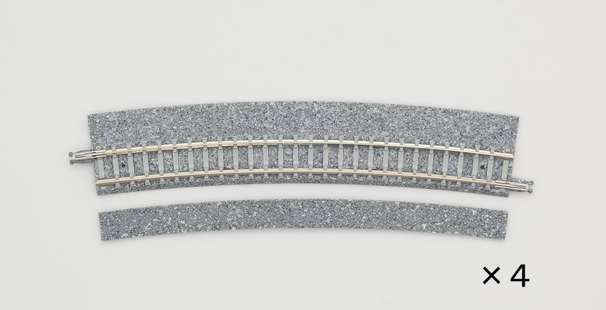 A wide curved rail with a curve radius of 541mm and a width of 37mm that allows you to easily attach and detach the ballast on the inside of the curve. *Cant is not included as it is mainly used for connecting to point rails.