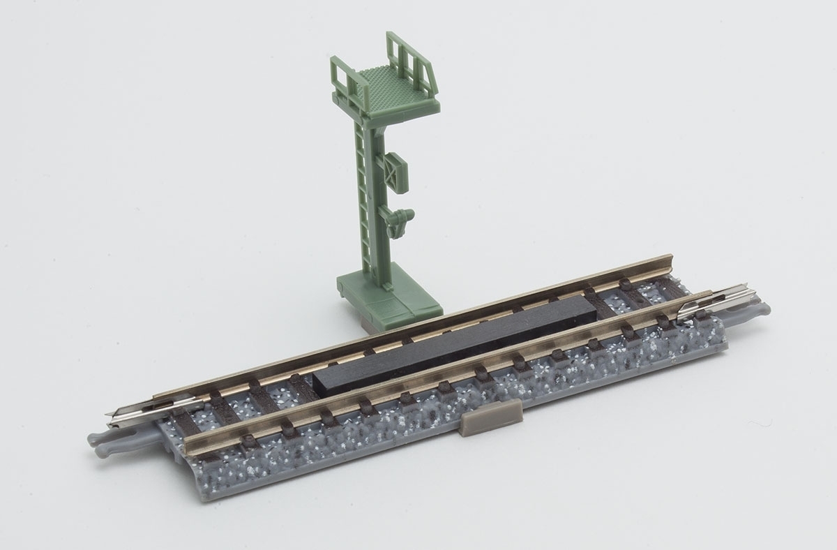 A permanent magnet is embedded in the rail with a release lamp, and the coupler of a locomotive with an M coupler can be automatically released on this rail. It also has a marker post, so you can check the release location even from a distance.