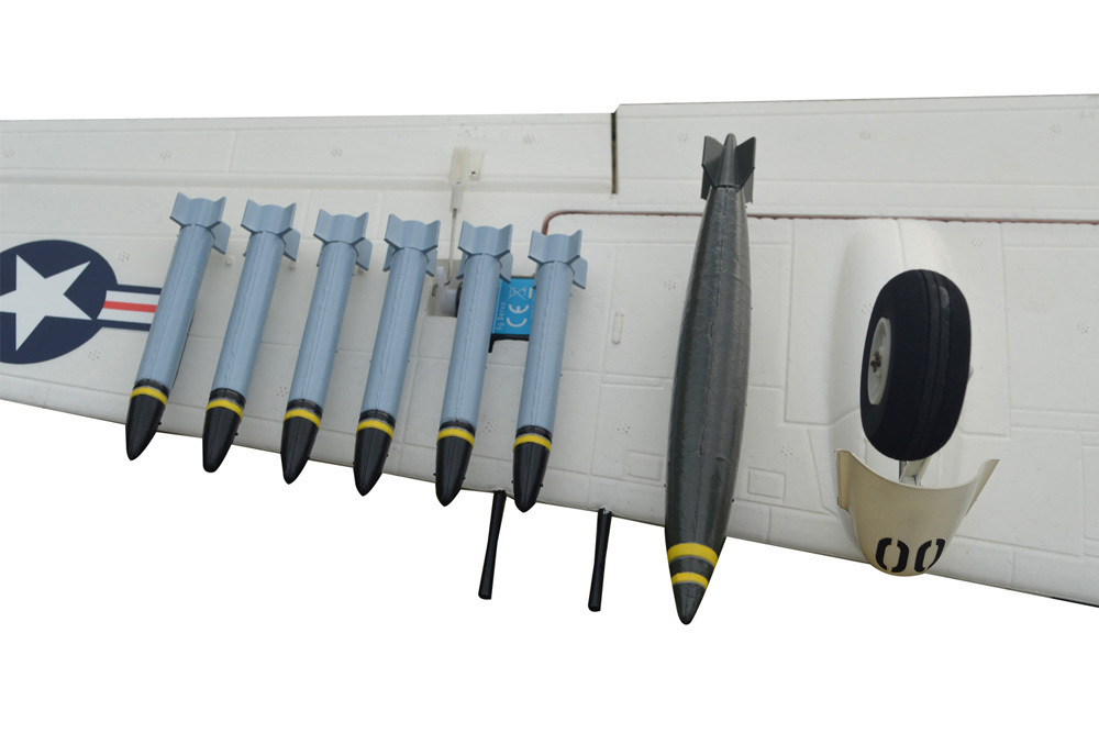 With attractive appearance, all parts are in proportion and gives people strong visual impact, with the scale rocket bomb, auxiliary oil tank and ventral bomb, it makes this airplane more scaled.