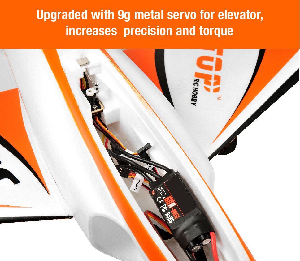 Servo: 4 x 9g plastic gear, 1 x 9g metal gear on elevator