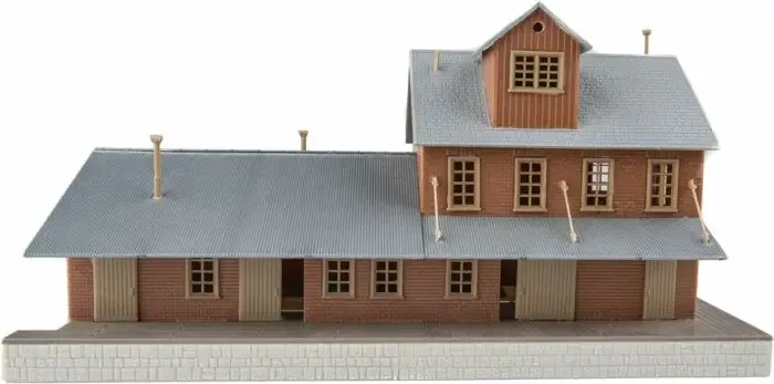 The Brick Freight House is an easy-to-build WalthersTrainline kit typical of small-town freight stations used across the continent. Featuring North American styling, typical freight car and truck/wagon loading docks it's perfect for use with your train set or on a layout. This structure kit features plastic parts molded in appropriate colors so there's no painting needed. The kit also includes colorful printed signs for easy-to-apply decoration. Easy-to-follow illustrated instructions make assembly fast and fun for first-time kit builders or seasoned modelers.