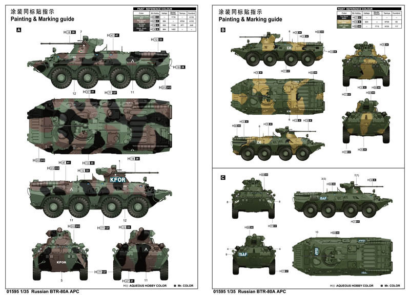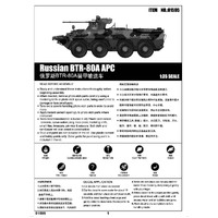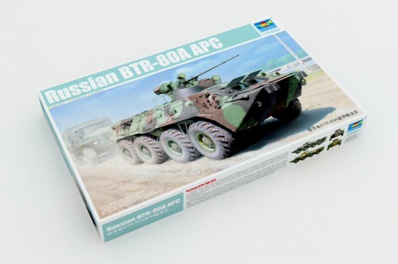 The BTR-80 8 x 8 armored personnel carrier is intended to carry personnel on the battlefield and provide close fire support. It can also carry out reconnaissance, combat support and patrol missions. It entered service with the Russian army in the late 1980's and has since been used in a number of military conflicts, including UN peacekeeping operations. The vehicle is in production and in service with the Russian army and with a number of other countries.The BTR-80 is superior to BTR-60/70 with a larger chassis, high-angle-of- fire turret, and single more powerful diesel engine (vs gasoline). Aalthough the armament is same as BTR-60 and BTR-70, except for added smoke grenade dispensers on the back of the turret, the conical turret has been improved and the gun can elevate higher. The front and side firing ports have been greatly improved (square/inset, angled slightly forward. The BTR-80 also fixed the side entrance problems found in BTR-60 & BTR-70. Now the entrance consists of a two part door (upper and lower parts which open outwards). It's now big enough to load/unload cargo.