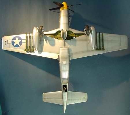 The North American P-51D Mustang was originally ordered in April 1940 by the British Air Purchasing Commission, and made its first flight for the US Army Air Force in September 1942. Initially under-powered, the aerodynamically clean single-seat fighter's performance was perfected by fitting it with the Packard v-1650 Merlin engine, resulting in the P-51B and D versions. In the European theater, the principal role of the P-51D, introduced in May 1944 and fitted with drop tanks, was to escort the US 8th Air Force heavy bomber formations all the way from British bases to targets deep into Germany, including Berlin and beyond. During the Korean Conflict, P-51Ds were used primarily for close support of ground forces until with drawn from service in 1953. The P-51 served with Air Reserve and National Guard units until 1957. After the war, the Mustang proved popular with over 55 nations, and in 1960's it was put back into production for the US Air Force.: