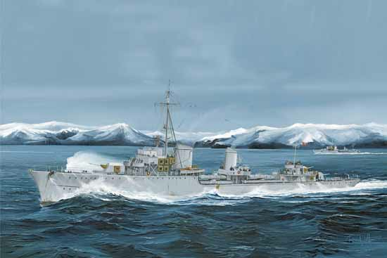 Z-25, a Type 1936A destroyer, was commissioned on November 30th, 1940. During the war, her forward gun was replaced by a twin turret and the anti-aircraft armament was increased. In operation Cerberus, Z-25 and a number of smaller ships supported Scharnhost, Gneisenau and Prinz Eugen sailed from Brest to their home bases in Germany via the English Channel. Despite British attacks by the Royal Air Force, the Fleet Air Arm and Coastal Artillery, all the ships had completed their transit. In March 1942, Z-25, Z-24, Z-26 and U-boats intercepted PQ-13 which was a British Arctic convoy. The Germans sank 6 transport ships. From late April to early May, Z-25 attack convoy QP-11 together with another two destroyers. HMS Edinburgh was sunk as while as a transport ship. She was taken over by France after the war and Scrapped in 1958.