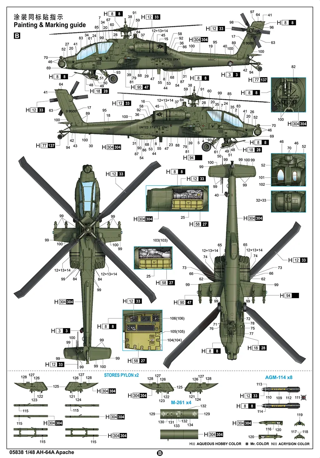 Trumpeter 1/48 AH-64A Apache Plastic Model Kit