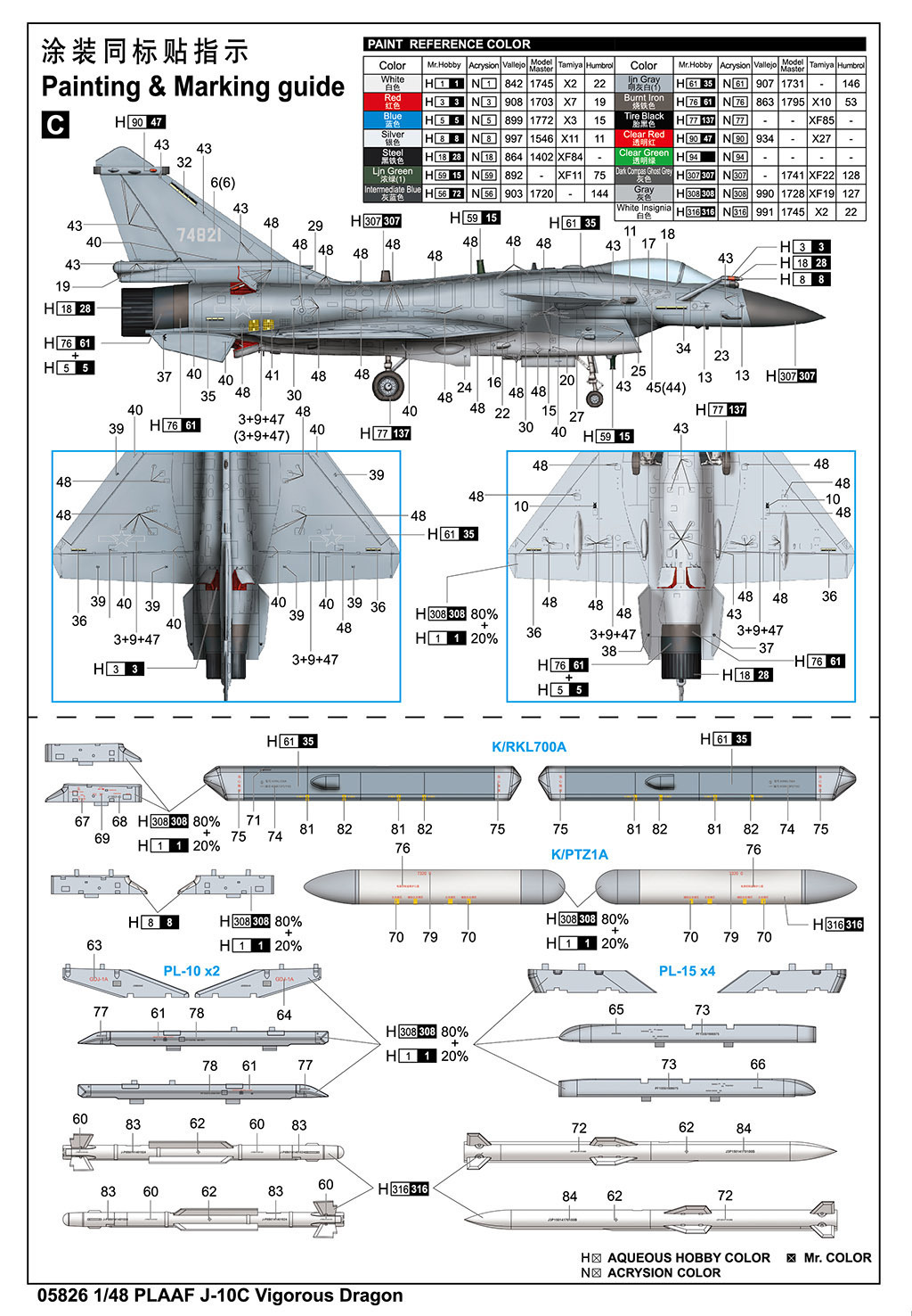 Trumpeter 1/48 PLAAF J-10C Vigorous Dragon Plastic Model Kit [05826]