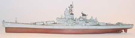 The construction of BB-63 began on 6 January 1941 in the New York Navy Yard as the third ship of Iowa-class battleships. The Iowa-class was planned with a view to rival the super battleships (Yamato-class-to-be) planned by Japan, which withdrew from Washington and London treaty in 1936. Its design represented that the class was 45,000 tons (the very limit to the London Treaty), nine 16in/50cal guns in three batteries, and the speed of 33 knots. The speed was decided under precautions against the Japanese Kongo-class high-speed battleships, which boasted of 30 knots. To fulfill the conditions, its engine compartment for a high-power engine needed to be a large one. However, the width of warships of the US, which faced two oceans, had to be 33m at the widest in order to pass through the Panama canal. Inevitably, its length at the waterline was very long 262m. although the US Navy at that time was capable of manufacturing 18 inch guns, it was impossible to mount them on a ship under 33m-wide. And the fact that the Yamato-class had 18 inch guns had been unknown to the US until the end of WWII. Entering service in June 1944, Missouri became the temporary headquarter of the 58th high-speed task force. When she participated in the battle of lwojima and Okinawa, she received Kamikaze attacks and was slightly damaged. After the surrender of Japan she entered Tokyo Bay as the flagship of the 3rd fleet. It is well known that the instrument of surrender was signed on her deck. After the war the Iowa-class ships returned home and served as the training ships for new officers. When the Korean War occurred in 1950, the four ships which had been in mothballs except Missouri, were back to the battle. In 1951 she bombarded Wonsan supporting the landing operation. In Vietnam War three Iowa-class ships including Missouri remained in mothballs with only New Jersey in service. In 1980 Reagan administration ordered the revival of Iowa-class battleships under the project of defense buildup of US naval force. Missouri was modernized and re-entered service in July 1986 with Harpoon, Tomahawk, and cutting-edge electric devices. In January 1995, four years after participating in the Gulf War with Wisconsin, she and other three were finally deleted from the Navy list ending the life of more than fifty years.