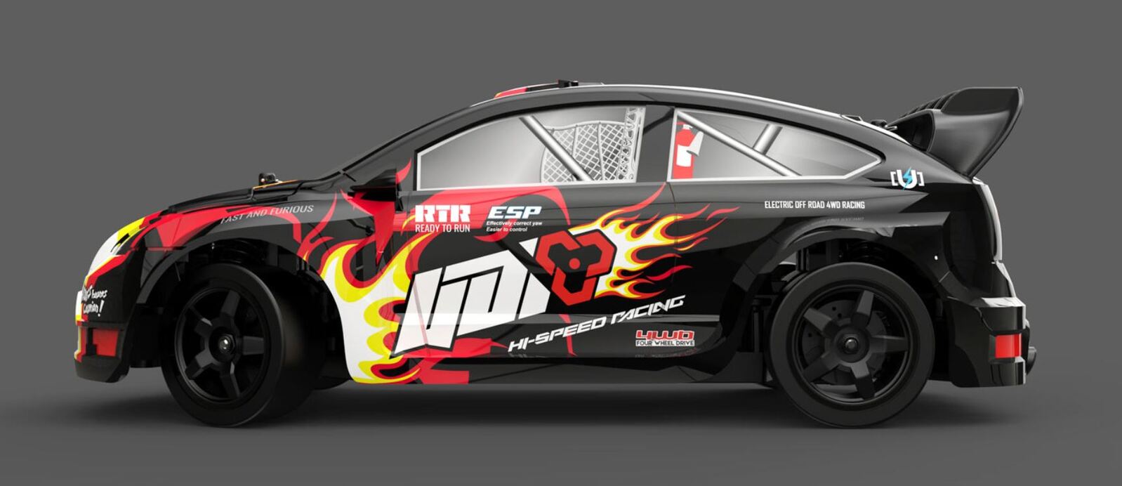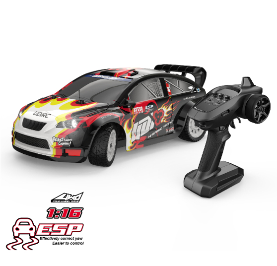 UDI 1/16 Brushed Drift Car w/Gyro 1/16 Full proportion high-performance 4WD racing car, integrated ESP (Electronic Stability Program) , effectively correct yaw, easier to control. It embodies the high level of creativity in design and engineering that unleashed a stunning array of new technology, new innovation. Fortifies them with brute strength and an intense, take-no-prisoners attitude to deliver what is simply the ultimate 6s monster. Get ready for a whole new level of power, strength, and speed. Features: Forward and Backward,Turn Left/right,Brakes Two modes: High Speed Car Drift Car (The car is supplied with a second set of rim and tyres for drifting) With bright headlights(with red/white/red&white three lights to control) ESP Body electronic Stability system (Gyroscope) The speed is halved when the lithium battery power is lower than 6.5V, and stops working when the battery power is lower than 6V Specs: Speed:≥30KM/H Color: Black Playing Time: 15-20 minutes Charging Time: 180 minutes Remote Control: 2.4G remote control Remote Distance: 80 meters Battery Spec: 7.4V 1200mAh Size: 30*15*10cm Contents: 1 x Brushed High Speed Drift Car 1 x 2.4G Transmitter 1 x USB Charger 1 x English Manual