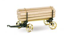 A lumber wagon with 15 genuine wooden logs as an accessory to the steam traction engine D 406 black-brass. Polished brass parts, off-set in black, with trailer coupling.