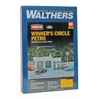 Introduced in the late 1930s, box-style gas stations like Winner's Circle Petro sprang up from coast to coast and remained a standard well into the 1950s. Combining the office, restrooms and service bays into one structure, they provided a uniform, neat appearance that attracted motorists. Lots of windows made them bright and cheerful, as did the enameled steel walls decorated in company colors. Although newer stations have taken their place, many survive today and of those some have been repurposed as independent garages, body shops, retail stores and offices. A few have even been converted into private homes!
