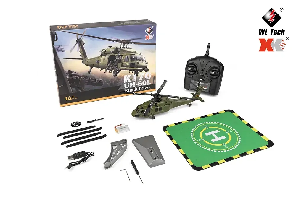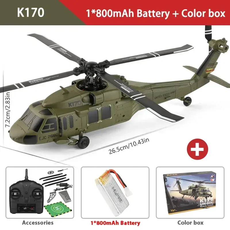 Highly Realistic UH-60L Black Hawk Scale Model: Designed as a true-to-scale restoration of the UH-60L Black Hawk, this flybarless helicopter features a finely detailed exterior and a four-blade rotor system for high simulation accuracy.